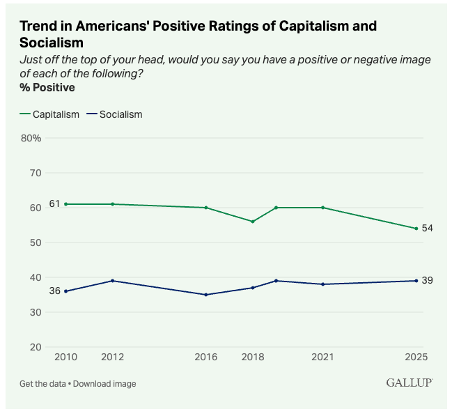 Capitalism isn’t very popular right now in America. A recent Gallup poll found that only 54% of Americans have a positive view of capitalism, down from 61% in 2010.