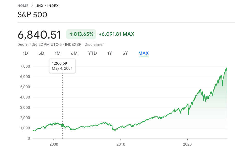 If you invested $1,000 in the S&P 500 on the day I graduated from college in May 2001, today that investment would be worth $8,301.